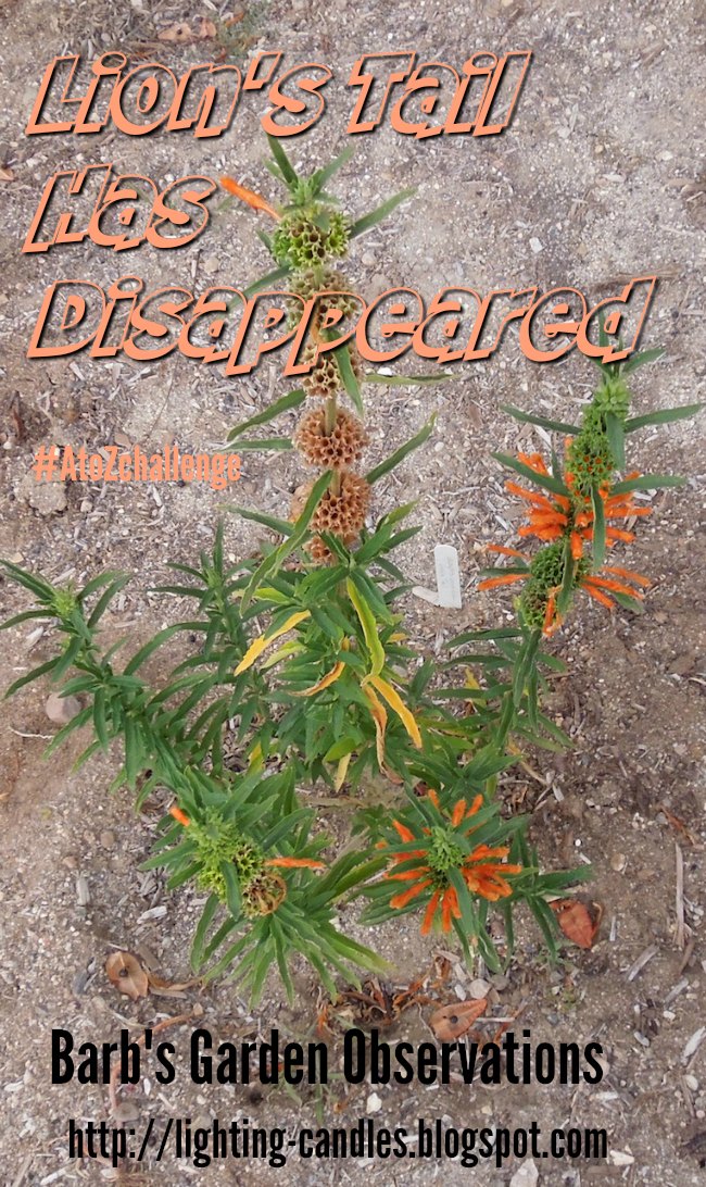 I was hoping my lion's tail plant would be at least this size someday, but now I can't find it at all. It's a perennial that is frost sensitive. A frost may have killed it. Because of all my surgeries last year during the lion's tail late summer blooming season, I wasn't out taking photos of my garden. I don't remember seeing it last year.